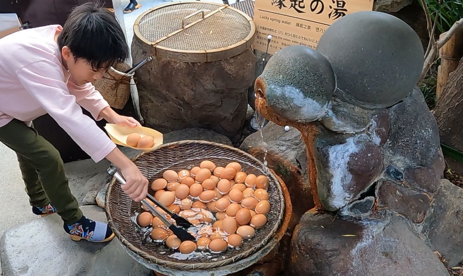 ▼写真は縁起の湯で、1個80円で温泉卵が食べれます(温泉は飲むことも出来たみたい)