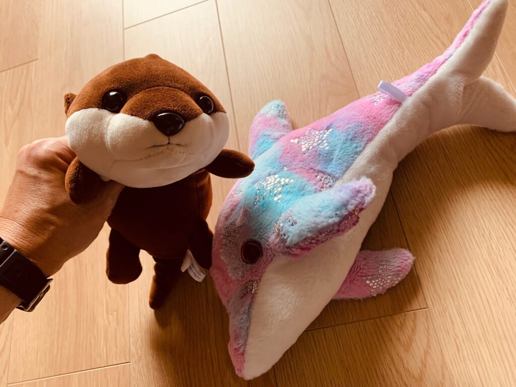 我が家は、イルカショーとカワウソのエサやりのせいか、イルカとカワウソを選びました。