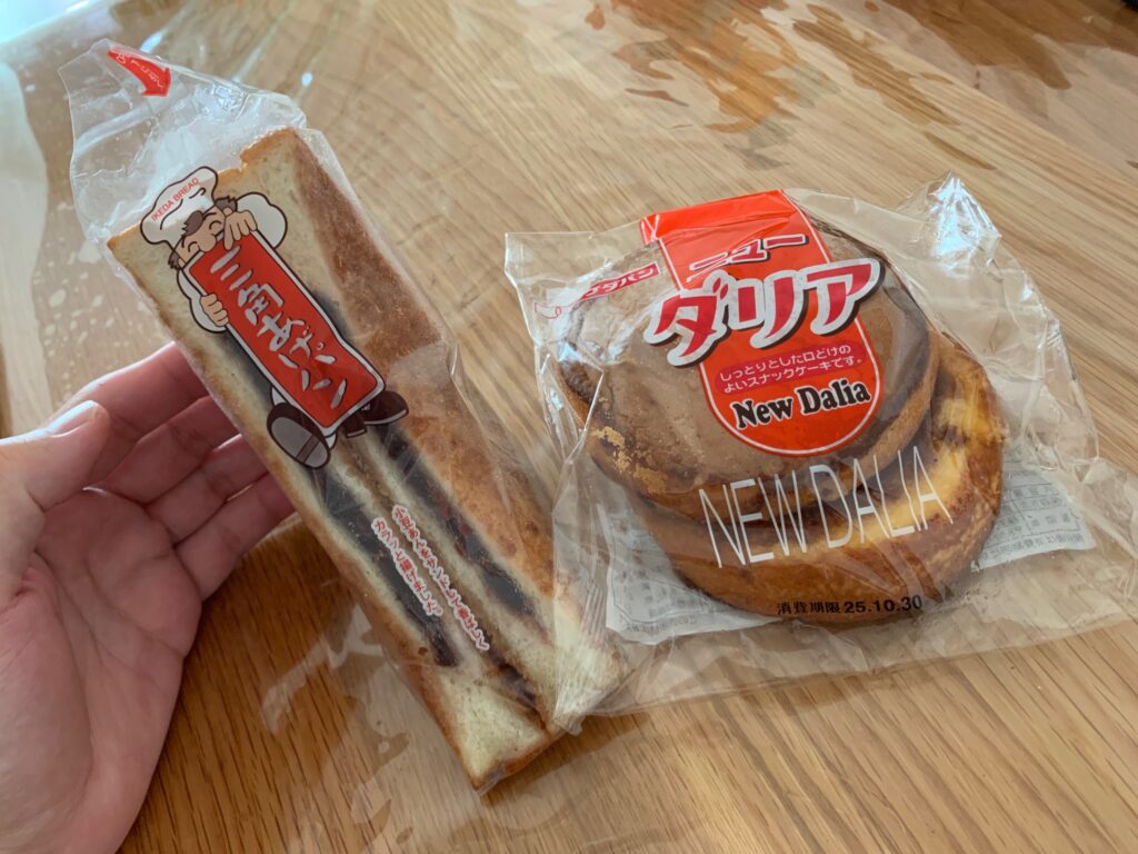 マルミヤストア別府駅店で購入したご当地菓子パン2品がこちら。▼