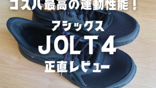 この記事はアシックスのジョルト4について紹介しています。5000円以下の価格でこの履き心地、ぜひその良さを知って下さい。
